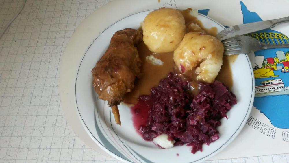 12. Na obiad dzisiaj kluski śląskie, czerwona kapusta i udko z kaczuszki