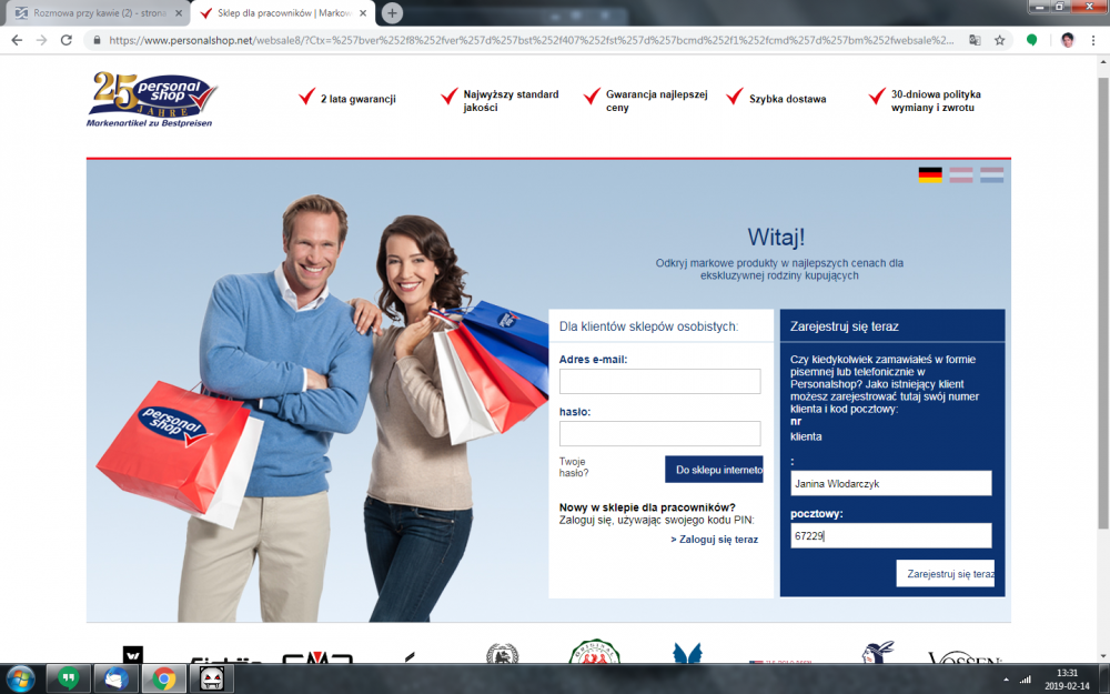 15. i zarejestruj, masz imię i nazwisko, ja wpisałam swoje, kod pocztowy mój Gerolsheim