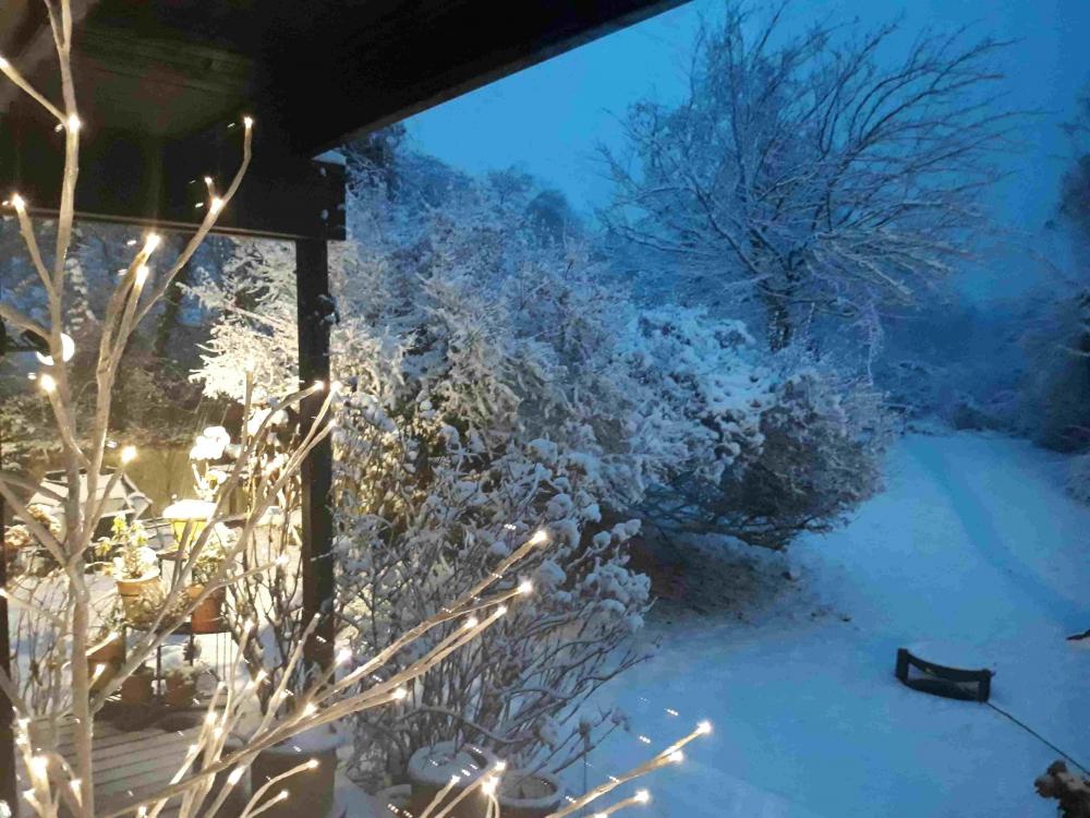 18. skończyłam odśnieżać i mam dość , prawie godzinę czasu odgarniałam śnieg, muszę koniecznie kupić taką łopatę do śniegu, bo robiłam to miotłą. Sypie nadal, popołudniu druga dawka pracy na świeżym powietrzu