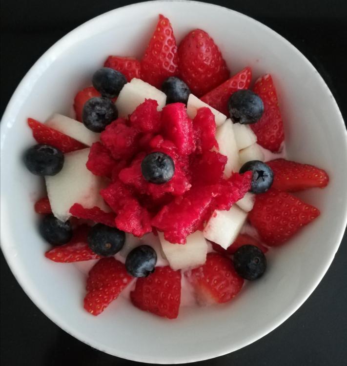 23. Mniaaam A u mnie zupka z wczoraj ale za to z qpą mięsa, no bez tego ani rusz , Andżela zieleniny nie jada, jak to ktoś kiedyś powiedział 'Co ja sałatę będę jadł? toć królikiem nie jestem Ale przyniosłam Ci deserek proszę i smacznego