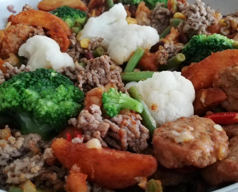 18. Dzisiaj mięso mielone z warzywami na patelni, na deser wassamelon