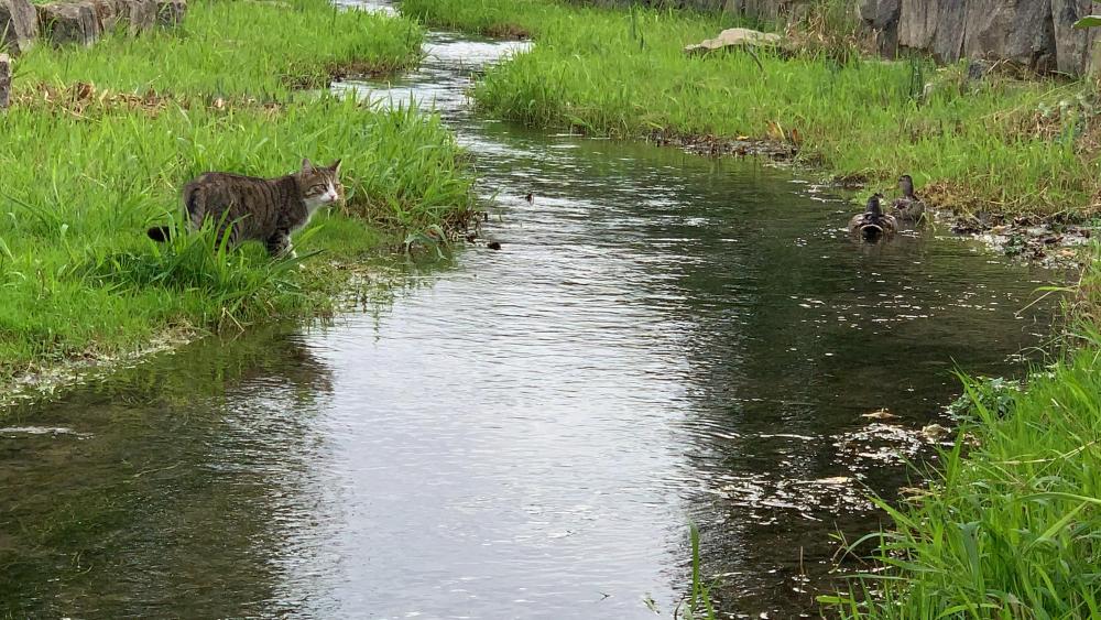 1. Taka sytuacja z lewej zniesmaczony kot, który zbyt długo się czaił na dwie kaczuszki - po prawej