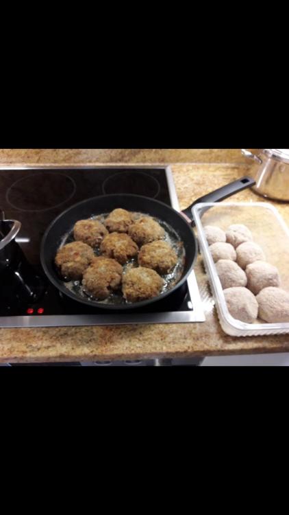 W południe opiekunka idzie z babcią do kuchni. Obiad razem z synem.