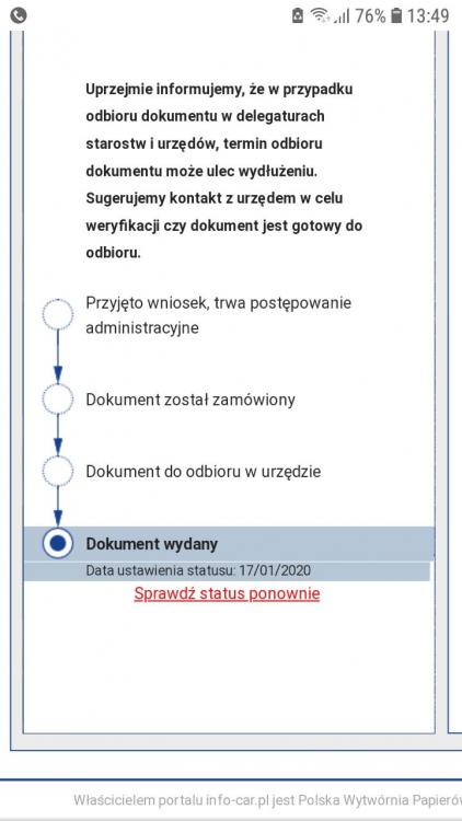 Uwielbiam taki obrót spraw. 7.01.2020 egzamin a 17.01 już dokument! Opłata 102,50 pln przez InfoCar, sms o gotowym dokumencie do odbioru, jedna wizyta w wydz. komunik. i plastik w kieszeni. Oby tak było wszędzie.
