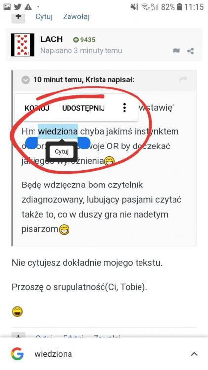 A jeśli chcesz szybciutko zacytować fragment czyjejś wypowiedzi(bez przepisywania jej), to klikasz, lub trzymasz paluszkiem wyraz, cytujesz i już gotowe.