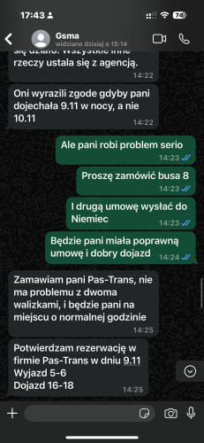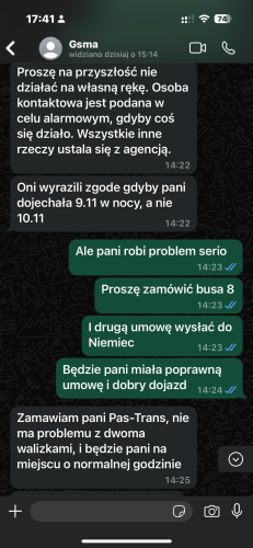 Opiszę kolejną sytuację firma GzMa załatwiła mi fajną pracę . Nie zamierzali mi jednak wysłać umowy . Do wyjazdu jeszcze ponad tydzień a zawarliśmy ją właściwie parę dni wcześniej . Po przyjeździe do domu zapytałam się o umowę to okazało się że zamierzali w ogóle wysłać do Niemiec ! Zmusiłam ich do wysłania do Polski . Im bardziej w las tym większy problem . Okazało się że nie mogę jechać transportem tym który lubię . Zrażona do osobusa i complex zaproponowano mi właśnie osobistą choć przed rekrutacją podałam że jeżdżę tylko ulubionymi transportami więc byłam zdziwiona nagła propozycja . Najpierw zaczęły się kłamstwa że rzekoma umowa już została wysłana i nie można zmienić daty 😂dziwne bo miała wyjść dopiero jutro po moich naciskach . Powiedziałam że to żaden problem bo zrobię wydruk że zmiana daty jeśli do jakiś problem lub mogą wysłać drugą kopię że zmiana daty rozpoczęcia pracy ? Później rzekomo kontaktowano się z rodziną w celu rozpoczęcia pracy w innym terminie ( zamiar po prostu zmienić datę na umowie ) następnie otrzymano rzekomo meila od rodziny że muszę przyjechać po południu . Problem w tym że dzienne busy jeżdżą 15 h a nocne 6 więc jest różnica i to znaczna w nadwyrężaniu kręgosłupa i bólu *wulgaryzm* . Więc ja preferuje te nocne . Zadzwoniłam do rodziny i okazało się że nikt się z nimi nie kontaktował i nie ma z tym żadnego problemu . Firma zrezygnowała ze współpracy 😂😂😊 Panie z kopytami na biurku w biurze nie dość że od początku problem i kłamstwa to jeszcze do mnie że to nie koncert życzeń owszem niech same pojeżdżą autostradą i powiedzą że to obojętne narażanie życia . A jeśli Niemcy chcą sobie obejrzeć opiekunkę jak w zoo w co wątpię 🤨 to niech założą obozy jak kiedyś to praca a nie oglądanie . Ręce ma nogi ma co tu oglądać . Poza tym w domu jest druga opiekunka więc w czym problem . Jedyny problem jak zwykle robią firmy które oszczędzają na biletach 😂 No i jedziesz jak troll 15 h albo i dłużej 🥵🤯ikisisz się w busie bo nie można ogarnąć wszystkiego z głową -