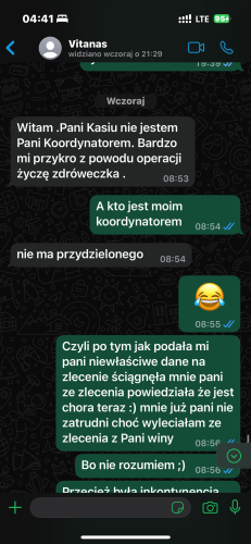 Np tutaj Vitanas dziewczyna miła opinie pozytywne przedstawiała mi dużo fajnych zleceń za każdym razem dzwoni koordynator niemiecki potwierdzić czy kiwi prawdę . Zgodziłam się na zlecenie za 1800 do pani chodzącej wszystko było omówione i 0”przed wysłaniem dziewczyna dzwoni mam dla pani lepsze zlecenie za 1900 zero trochę włącza mi się czerwona lampka e ufam koordynatorowi . W tym czasie nie dzwoni już koordynator z Niemiec pani koordynatorka mówi że będę miała akcept na 100 procent pytam czy nie ma a tam inkontynencja kałowej mówi że nie że to zlecenie do nich wróciło . Przed samym wyjazdem coś mnie tknęło i pytam raz jeszcze jak jest z zakupami „ rower „ 😂3 km . Że co słucham zimą rower 3 km. Ja Ostroga zaleczona i. Mówię że nie mogę jechać w takim wypadku a ona mnie straszy że firmą mnie zablokuje 😂i że da mi kontakt do opiekunki ( 10 min przed wyjazdem ) opiekunka bredzi coś przez tel jakby z kosmosu w końcu rozmawia ze mną że rodzina fajna i tak dalej że się dogadam . Zajeżdżam na miejsce . Inkontynencja kałowa której nie robię . Koordynatorka zrzuca wszystko na mnie żebym kasowo dogadała się z rodziną . Córka ma w *wulgaryzm* wszystko , natka zaniedbana brak pampersów podkładów na zmianę takich cerat na łóżko itd itd cukier po 400 kobieta nie widziała od roku Podologia powtarzane paznokcie dramat ogólny , dopiero teraz był Podolog . Koniec końców jak zaczęłam ustawiać sztele zamawiać rzeczy ( córka do mnie w ogóle z pyskówkami że to kosztuje ) zażądałam kasy za inkontynencja to mnie mnie wykebali o w sumie nie żałuję tylko szkoda mi tej podopiecznej . Natomiast koordynatorka wysłała mi link żeby jej wystawić pozytywną opinię wkurwilam się i nagle zachorowała jak tak naprawdę była w pracy bo dzwoniłam do niej i nie mogła znaleźć mi żadnej pracy ! Ciężko naprawdę czasami coś wyczuć w tym samym systemie pracowały dwie agencję unijną znalazła od razu i był akcept a tu cóż nie było tylko od 15 znikały jak bułeczki pani chora angina itd itd nie mogła ki znaleźć na przejazd nie mogła mnie dodać do akceptacji podczas po pyry po przyjeździe znów angina mimo że widziałam ją na Watch up a w firmie nikt nie wiedział o chorobie itd itd kiecy zadzwoniłam na główną infolinię . Ciężko wybadać więc tak wystawiłam opinie zgodnie z prawdą co mnie tam spotkało mimo że nie została ona opublikowana na Google Dodam jeszcze że w międzyczasie pytałam czy jeśli pani jest chora to ktoś nie może ją przecież zastąpić . dodam że w dwukrotnych przypadkach firma Vitanas zapłaciła za te same zlecenia o 200 do 300 euro mniej niż Ostina . Także tego . Ja dostałam akceptację na to samo zlecenie za1900 koleżanka 2300 w innym przypadku w istnienie dostałam akceptację na zlecenie za 1900 a u nich to samo zlecenie kosztowało 1730 więc tak to mniej więcej wygląda . Nie zdecydowałam się jednak pojechać gdyż chciano mnie wysłać osobistym i zaczęły się problemy z transportem . Ja osobistym nie jeżdżę gdyż kilkakrotnie kierowcy zachowywali się tam agresywnie wobec pasażerów . I nie będę jeździć niestety z pseudo przewoźnikami . I ryzykować życie bo firma nie potrafi ogarnąć przewozu , Sorki podpięłam temat pod zły wątek -