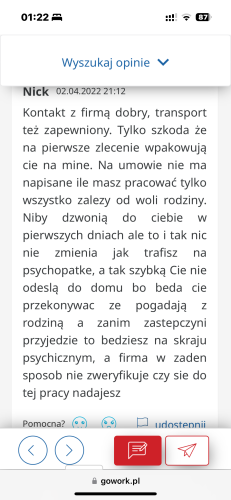 Dodam że firma jeszcze obcięła mi jeden dzień pracy nawet za takie grosze lista grzechów firm jest naprawdę przeolbrzymie trzeba zacząć to nagłaśniać serio jak widać na kolejnym przypadku szere obietnice przed wyjazdem że firma będzie wspierać, że pomoże prze wyjeździe etc to bzdura . Osoba odpowiedzialna za kontrakt nie była osiągalna a rekrutaerka rozkładała ręce bo to nie jej zadanie 😂w poniedziałek zwieziono mnie do domu bez grosza z inną stawką niż się umówiłyśmy nie policzono mi również kwoty dodam że tu również jak u adiutora były przewoźnik Complex w jedną stronę i o dziwo również potrącono mi pieniądze . Może 🤔 coś jest na rzeczy z tym przewoźnikiem ? -