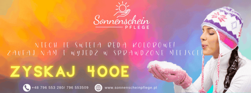1900e/30 dni! + 300e bonus. Od 24.11 do 24.01 Lokalizacja: Wernau/M Stawka: 1900e/30 dni+31 dzień! Umowa: polska, zlecenie, druk A1, karta EKUZ Informacje o zleceniu Do opieki samotna seniorka, porusza się za pomocą rollatora. Przesypia całe noce, choruje na insulinową cukrzycę. Do kontaktu jest córka, która 2x w tygodniu odwiedza mamę. Z nią robi się zakupy, przy tym nie ma żadnych problemów, co sobie opiekunka zaplanuje według listy to wrzuca do koszyka. To domek jednorodzinny z ogródkiem, dla opiekunki osobny pokój, internet, TV. Warunki są bardzo dobre, świeżo odmalowany, jasny pokój. Na miejscu jest od nas opiekunka, chętnie udostępnimy nr.! :D +300e bonus świąteczny. Bardzo polecamy, to jedno z naszych najlżejszych miejsc <3 Wymagania - znajomość języka niemieckiego w stopniu komunikatywnym, - referencje. Przy seniorce: - pomoc przy ubraniu/ rozbieraniu, -pomoc przy higienie osobistej, pomoc przy kąpieli. - na noc pieluchomajtki, - nie ma problemów z kałem. Seniorka je wszystko, nie ma żadnej specjalistycznej diety. Czas wyjazdu 24.11 - 24.01.2026 Oferujemy • legalne zatrudnienie, • bezpłatny dojazd minibusem, którego mogą Panie nam zaproponować i pełne wyżywienie, • płatny 31 dzień miesiąca, • ofertę dopasowaną indywidualnie do Opiekunki, • opiekę i wsparcie w czasie wyjazdu. Kontakt Sonnenschein - Pflege sp. z o.o. Os. Konstytucji 3 Maja 26C/40, 67- 100 Nowa Sól (woj. lubuskie) Napisz do nas: [email protected] Skontaktuj się z nami: +48 796 553 280 Martyna +48 796 553 509 Klaudia