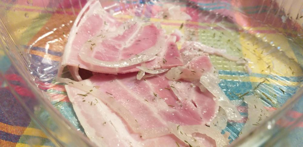 5. Właśnie się odbyła ostatnia wieczerza... babka kupiła na okoliczność powrotu męża na chatę, takie pyszności! Nie mam pojęcia jak to się nazywa, bo akurat miała wypchaną gębę żarciem i nic nie rozumiałam.. Taka forma peklowanego boczku, pokrojonego na plasterki, ułożony w pojemniku i zalane delikatnie zalewą octową z cebulką i majerankiem...bosssskie!! Nigdy wcześniej tego nie spotkałam...zresztą nie włóczyłam się po metzgereyach Wrzucę fotkę . Przypominam, że jestem w Niedersachsen , 50Km za Hannover