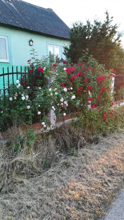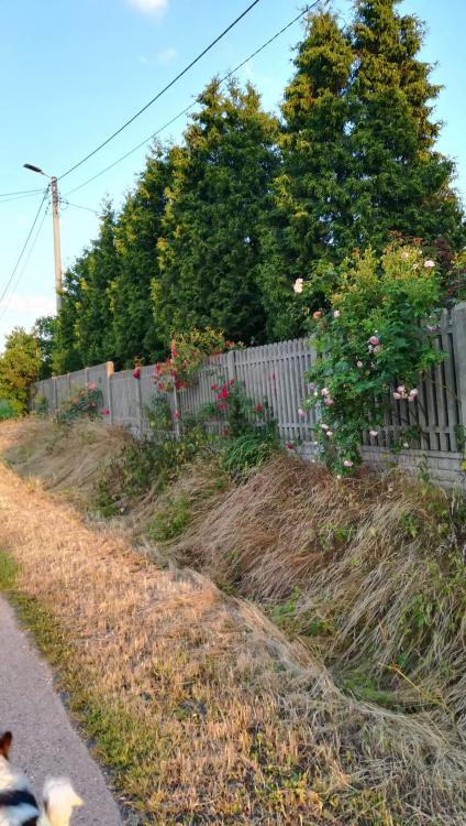12. @elf TAM razem są Flamentamz czerwona i Zlamana biel New Dawn. Przy tym betonowym ogrodzeniu są Sympathie, Roseum Uetersen, Flamentanz, Jasmine,.Giardina i Aloha. Te ostatnie to odcienie różu