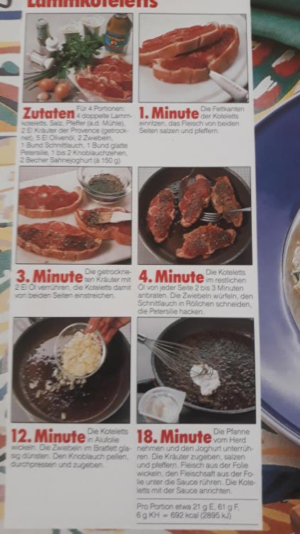 10. LAMMKOTELETTS - 692 KCAL Aus der grieschischen Küche: gebratene Lammkoteletts mit warmer Joghurtsauce .Dazu passen Tomatensalat , Baguette und Rotwein
