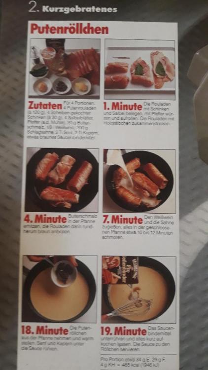 7. Putenrouladen, gefullt mit Kochschinken und Salbei, in einer Senf-Kapern-Sauce