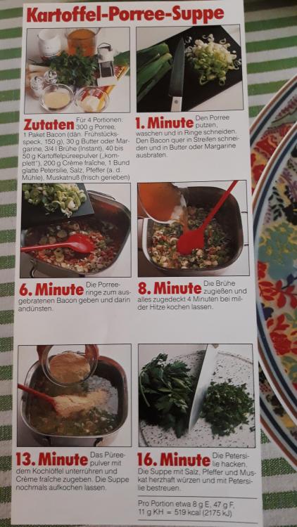 16. KARTOFFEL-PORREE-SUPPE- 519 kcal Viel Porree, viel Creme fraiche und viel Petersiele sind die Basis deser sahning-cremingen Kartoffel-Porree-Suppe