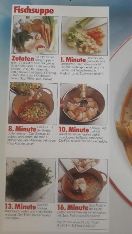 15. FISCHSUPPE - 318 kcal Der Clou diesel Fischsuppe: Sie wird mit Krebsbutter verfeinert, die neben dem intensiven Geschmack auch noch winę schöne Farbe liefert.