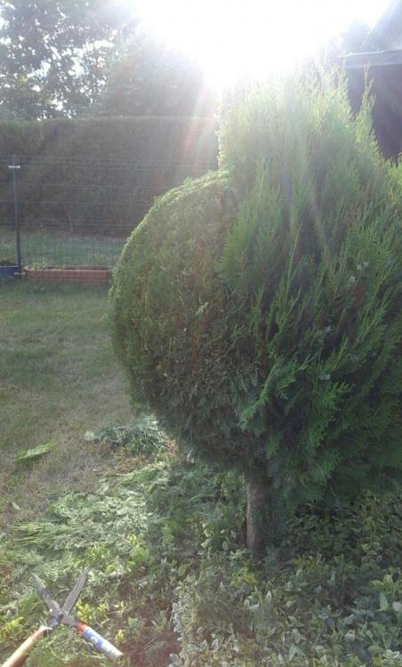 4. A ja dzisiaj na mojej wsi doprowadzam kolejną tuję do poprzedniego stanu . Ta jest moja ulubiona bo hoduję ją od nasionka i teraz chucham i dmucham jak na dziecko