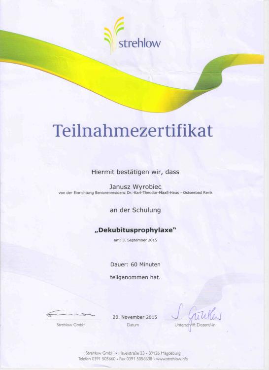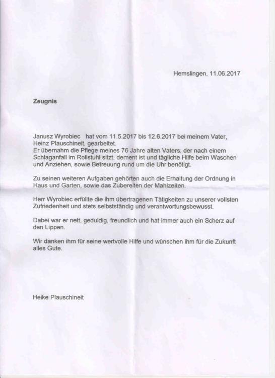 3. Mężczyzna-Opiekun Osoby/Osób Starszych podejmie pracę "od zaraz w Niemczech. Jedyną moją wadą jest to, że język niemiecki znam tylko w stopniu podstawowy, chociaż przez różne agencje jest on określany jako "słaby komunikatywny lub silny podstawowy. Niemniej jednak sam uważam, że jest słaby, ale na tyle abym mógł porozumieć się z podopiecznym określam go jako wystarczający. Kolejną wadą (już drugą) jest to, że jestem mężczyzną w wieku 68 lat, ale myślę, że to nie jest wada dyskwalifikująca mnie w ubieganiu się o pracę Opiekuna. Pracę podejmę natychmiast po otrzymaniu oferty i akceptacji przez Rodzinę i Podopiecznego. 18_-_referencje_1.pdf