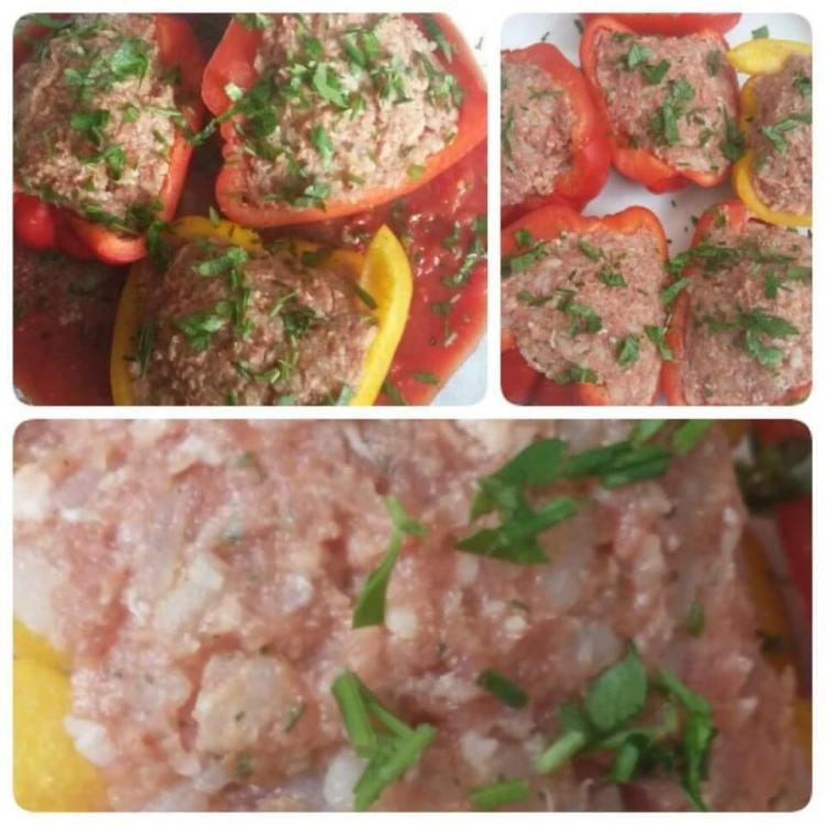 2. Papryka faszerowana miesem mielonym z ryżem, w sosie pomidorowym. 3 połówki zamroziłam, będzie na następny obiad.