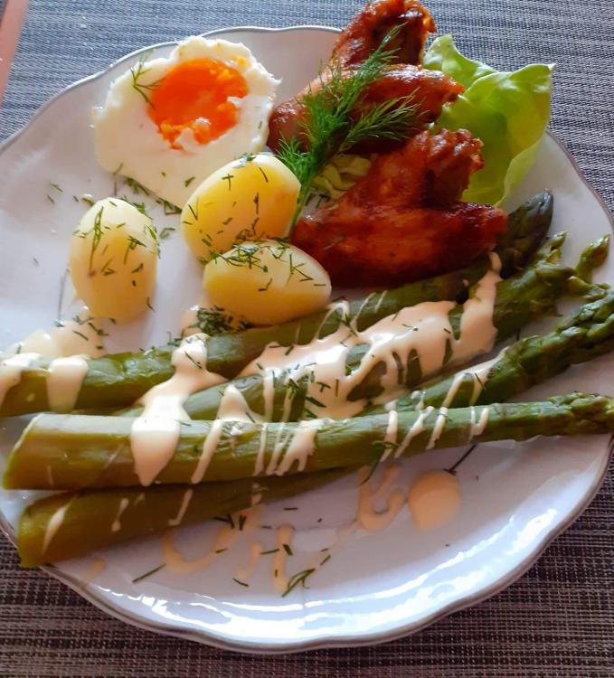 1. Ja gotuję 10 minut, dodaję sól 1 łyżeczkę i poł łyżeczki cukru . Jak nie mam odpowiednio wysokiego garnka to odcinam łebki szparagów i wrzucam 3 minuty przed końcem gotowania.