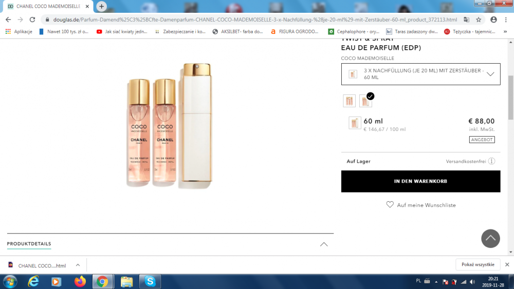 @Hagia Sprawdziłam, a nawet złozyłam zamówienie. Niestety , cena bez zmian, a nawet drozej niz rok temu, bo 88 euro. Na otarcie łez proponuja 20% rabat przy nastepnym zakupie. Niech się pocałują w dooooopę. Poczekam, może na mikołajki cena spadnie. Chodzi o Coco Chanel Mademoiselle. Rabat nie obowiązuje dla tych perfum!.