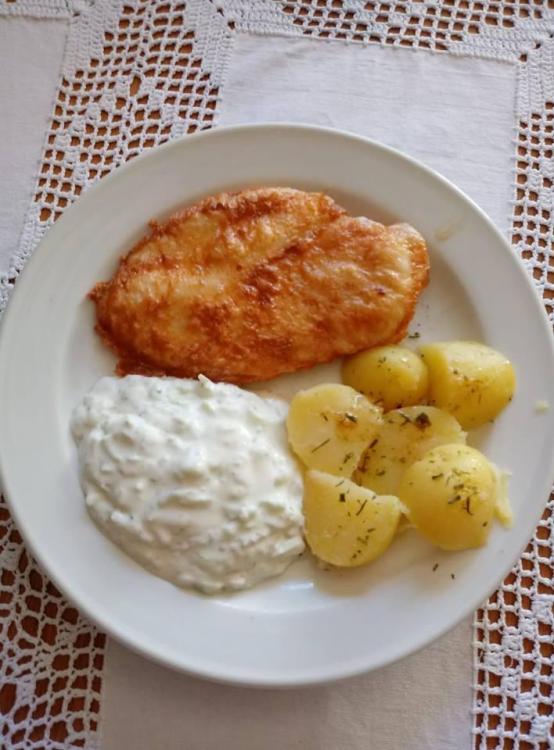 18. Kotlet z piersi kurczaka, ziemniaki, mizeria