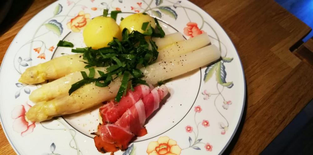 6. Jemy w gościach ;). Pyszne było, to zielone to czosnek niedźwiedzi, który jem na śniadanie, obiad i kolację : D.