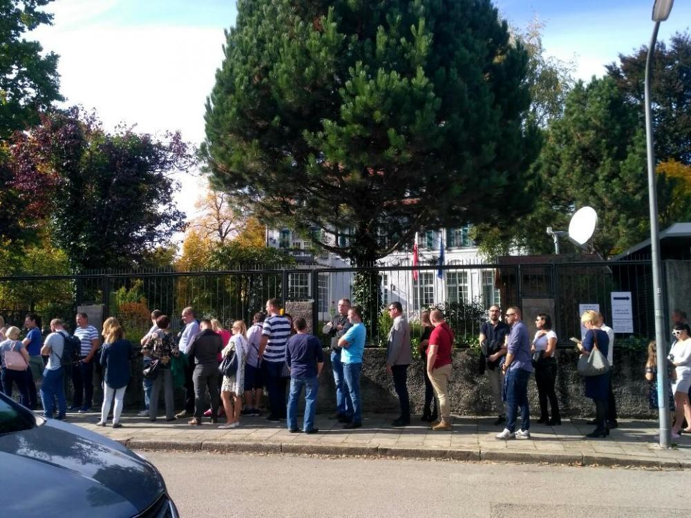 1. Kolejka pod ambasadą w Monachium, trzy godziny czekania :/. Bałagan niesamowity, dwie komisje, jedna taka, jak widać, a w drugiej 5 minut czekania. Ewidentnie ktoś zawalił :(.