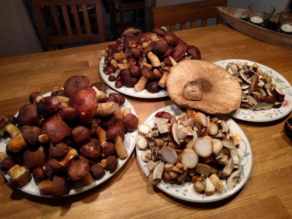 2. Piękne ! A to moje, jeden ze zbiorów, nie tak okazałe, ale i tak jestem dumna . Zostały pożarte z makaronem (sos na bazie białego wina, mlask!) i przerobione na grzyby w occie, które to popełniłam pierwszy raz w życiu ku uciesze pana Ciasteczkowego, który zapałał do nich wielką kulinarną namiętnością .