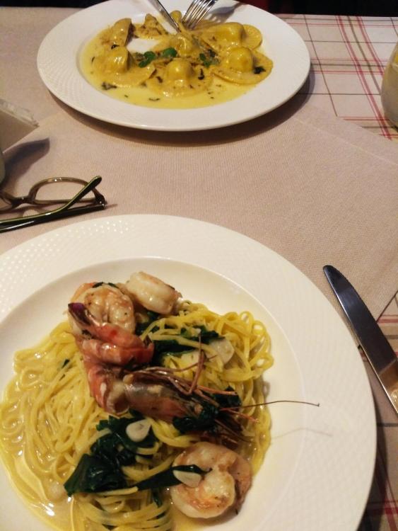 11. Dziś moje ulubione żarełko w mieście :). W zeszłym roku odkryłam knajpę i przepadłam. Makaron wstążki z krewetkami w białym winie ze szpinakiem i czosnkiem + sałata "mista", mniam