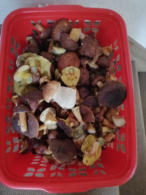 9. Dzień dobry zadowolonym i malkontentom, mięsożercom I roślinolubnym, dziergaczom I dłubaczom, wszelakiej maści i płci oraz profesji, a zwłaszcza zakręconym grzybiarzom, do których siebie zaliczam. I mnie o 7.00 było 15,3 stopnia. Znaczy, że rosną . Wczorajsze częściowo przerobione, częściowo rozdane. Trza na jutro następny wypad planować.
