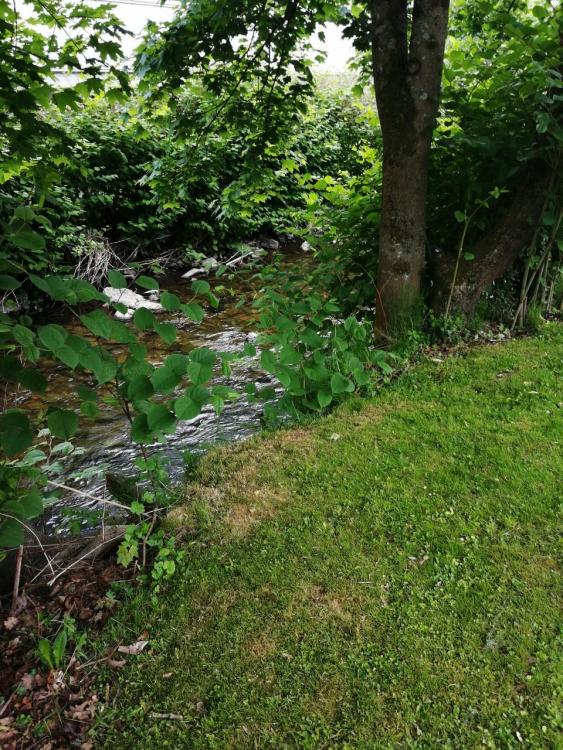 3. On ci to. Z góry widziany. Częściowo. A między łączką, a budynkiem, za krzewami płynie sobie rzeczka.